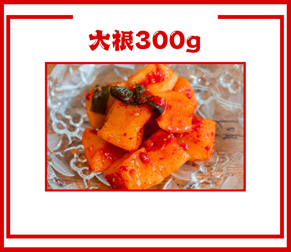 原材料/大根(国産)、大根(国産)、赤とうがらし粉(韓国産)、いわしのエキス、にんにく、しょうが、ねぎ、砂糖、ごま、/調味料(アミノ酸)